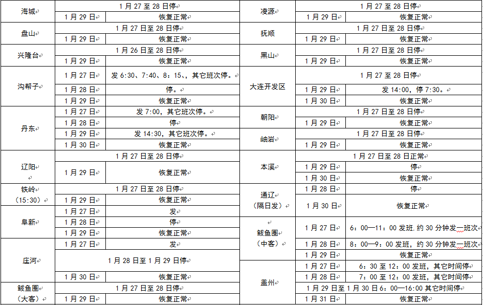 2017年春節(jié)假期班次發(fā)車時(shí)間